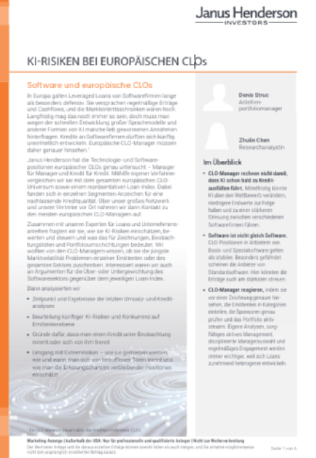 In diesem Beitrag fassen wir die Erkenntnisse aus den Rückmeldungen der CLO-Manager zusammen und zeigen auf, in welchen Punkten die Einschätzungen weitgehend übereinstimmen, wo sie auseinandergehen und weshalb KI nicht als einheitliche, sektorübergreifende Disruption wahrgenommen wird. Stattdessen wird KI als Differenzierungsfaktor zwischen Geschäftsmodellen gesehen, mit Auswirkungen auf Bewertungen, Refinanzierungsrisiken und die langfristige Kreditqualität. Die unterschiedlichen Antworten verdeutlichen die relevanten Unterschiede in den Einschätzungen, Underwriting-Annahmen und beabsichtigten Portfolioentscheidungen der Manager. Dies unterstreicht die Bedeutung einer aktiven Auswahl von CLO-Managern, insbesondere vor dem Hintergrund der fortschreitenden Segmentierung im Kreditmarkt. Dieser Ansatz steht im Zentrum der aktiven CLO-Managementstrategie von Janus Henderson.