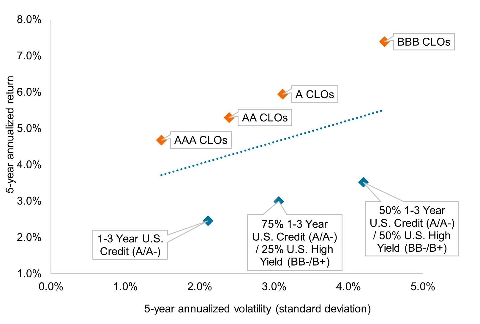 Providing exposure to high-quality, floating rate collateralised loan obligations (CLOs), which are designed to offer diversification benefits and low volatility with low downgrade risk.