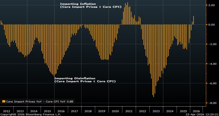 Chart 4: Inflation: Core Import Prices Relative to Core CPI