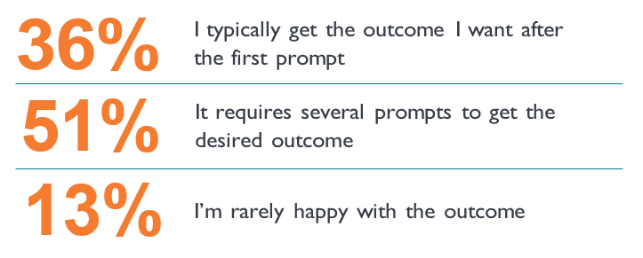 Prompts are the commands you give the AI tool to perform an action, for example, draw a picture or analyse some data. Sometimes prompts need to be finessed to achieve the desired outcome. Those of you who were using AI tools seem to be fairly satisfied with the results.