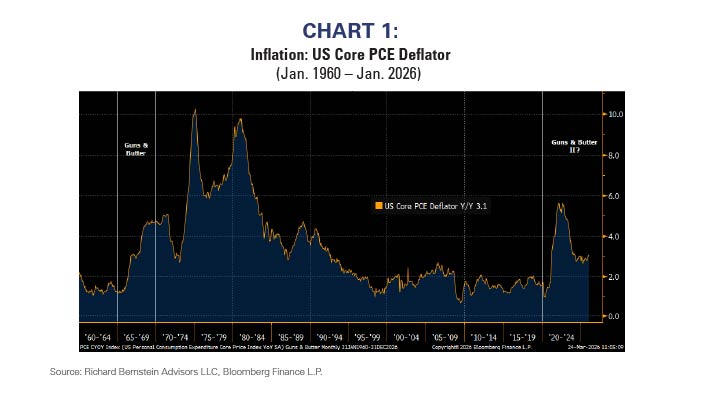 Some observers today have drawn parallels between the recent oil price surge spurring inflation and the oil shocks of the 1970s. But there are also stark similarities to the 1960s Guns & Butter period. Investors should consider whether current geopolitical events and domestic politics could be mimicking the 1960s with longer-lasting effects than oil shocks have historically had.