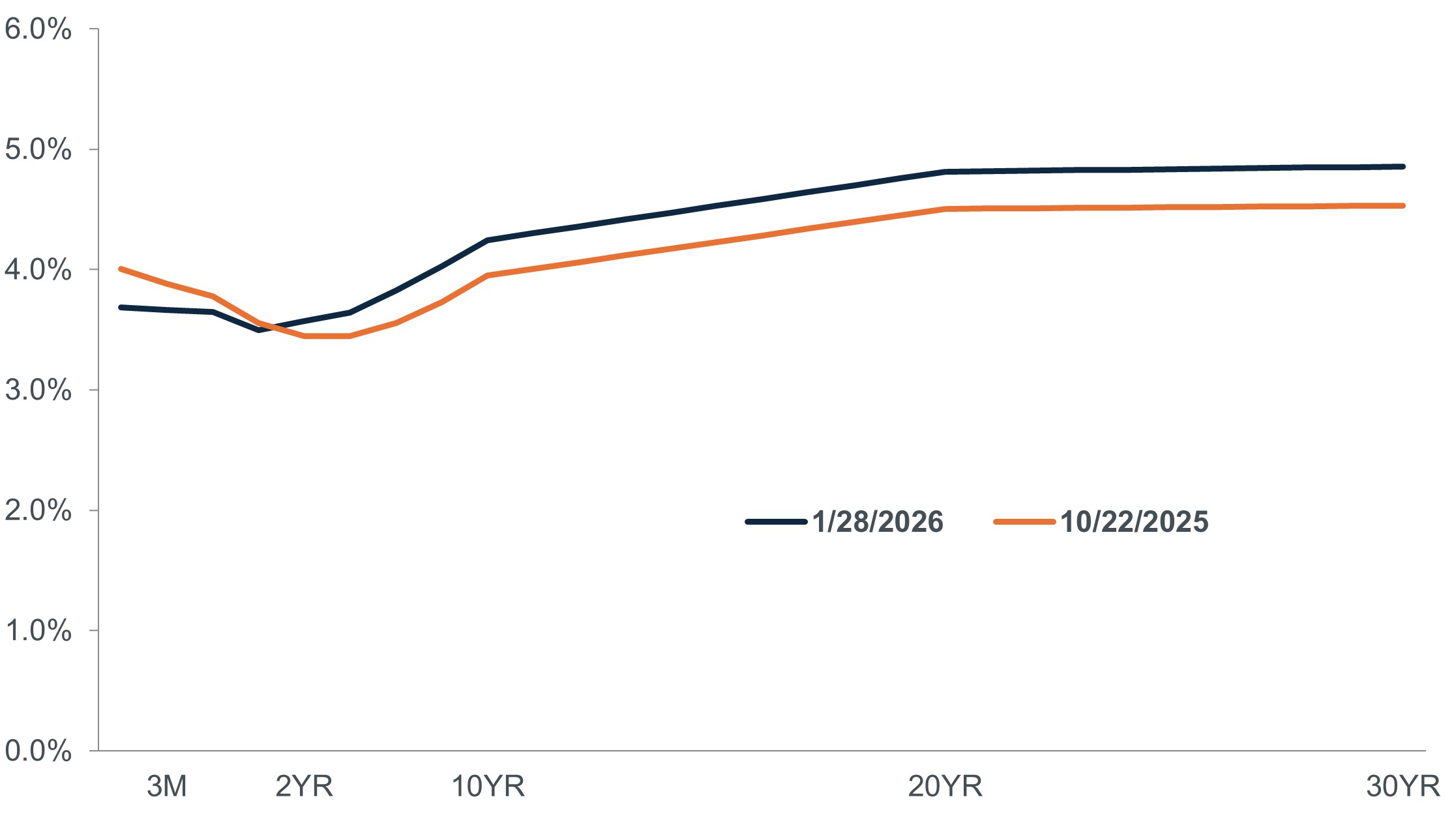With the Fed having been expected to be on hold, the front end of the Treasuries curve has been rangebound while longer-dated maturities have had to contend with factors like policy volatility and U.S. federal debt.