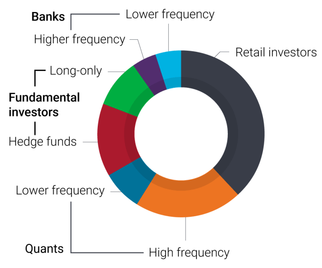 This shift has happened for clear reasons. Retail market activity exploded with zero-commission trading and a more speculative mindset among younger investors. Quantitative strategies have grown as more computing power and alternative data have become available. And multi-manager hedge funds have expanded due to solid performance, though they trade with shorter time horizons and use leverage.