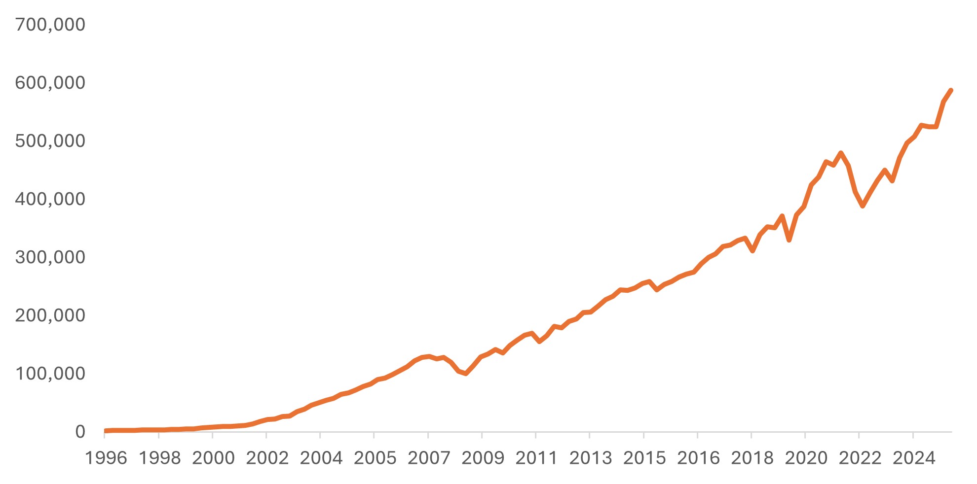 Households and nonprofit organizations; assets in 529 plans, level, millions of U.S. dollars