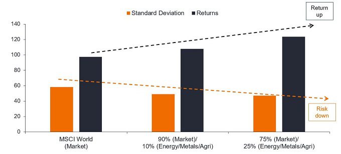 Chart 2: An allocation to resources may improve risk-adjusted returns over the long term (10 years)