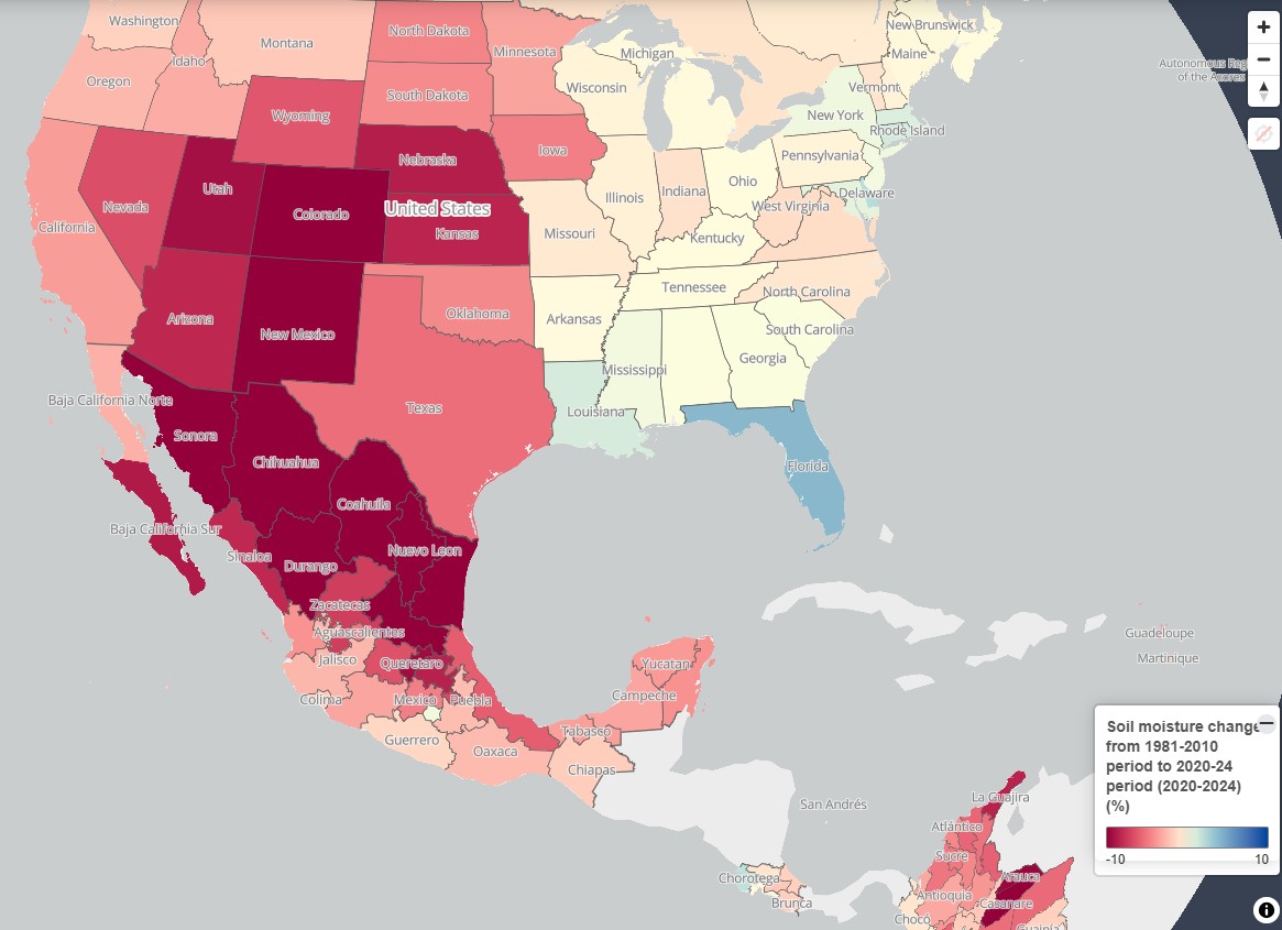 Figure 1: US states exposed to droughts or floods during 2020-2024, compared to 1981-2010