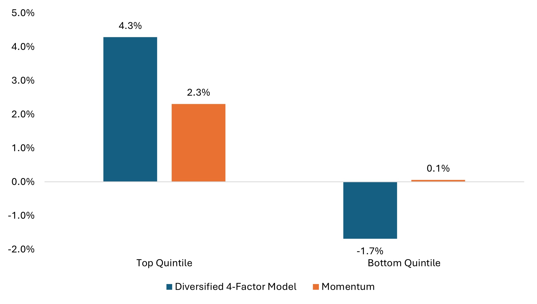 Exhibit 3: Over a 20-year period, a diversified model that incorporates valuation, quality, and capital efficiency alongside momentum has shown greater efficacy than momentum alone.